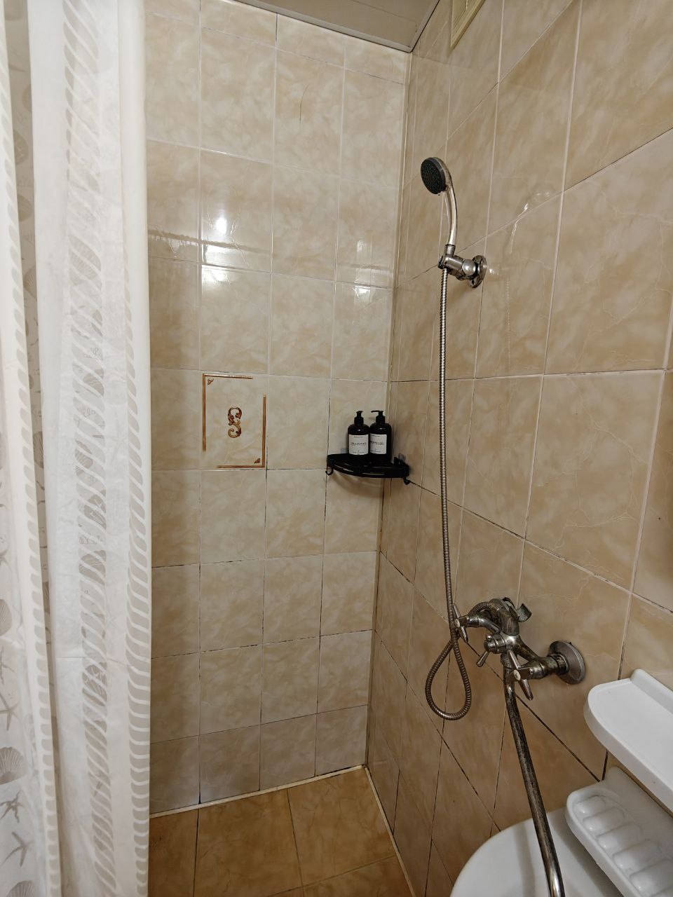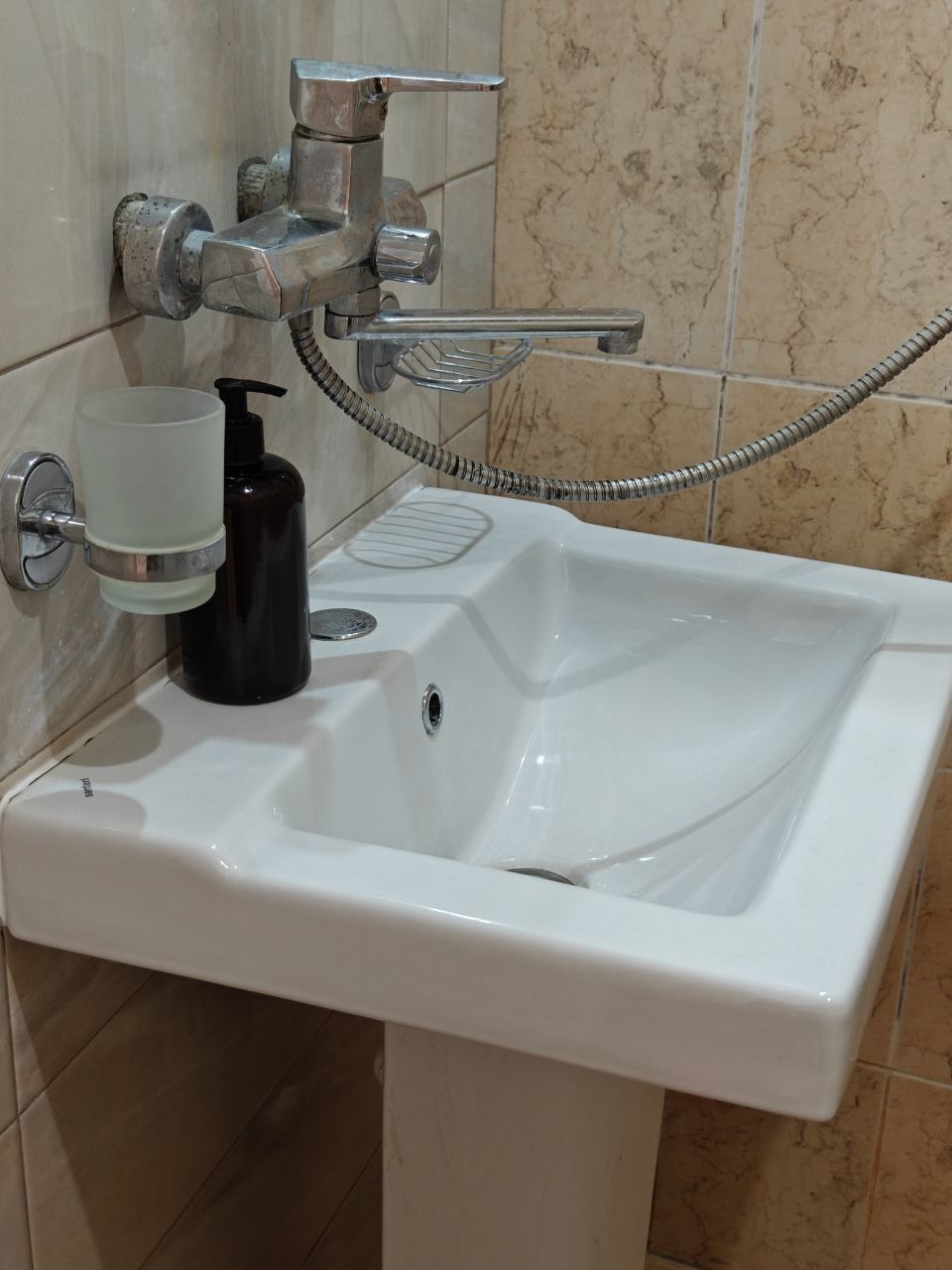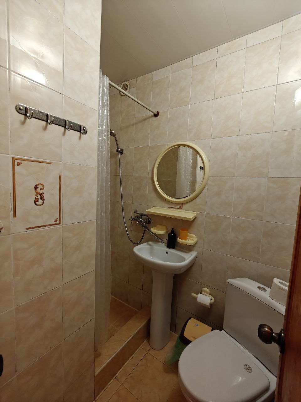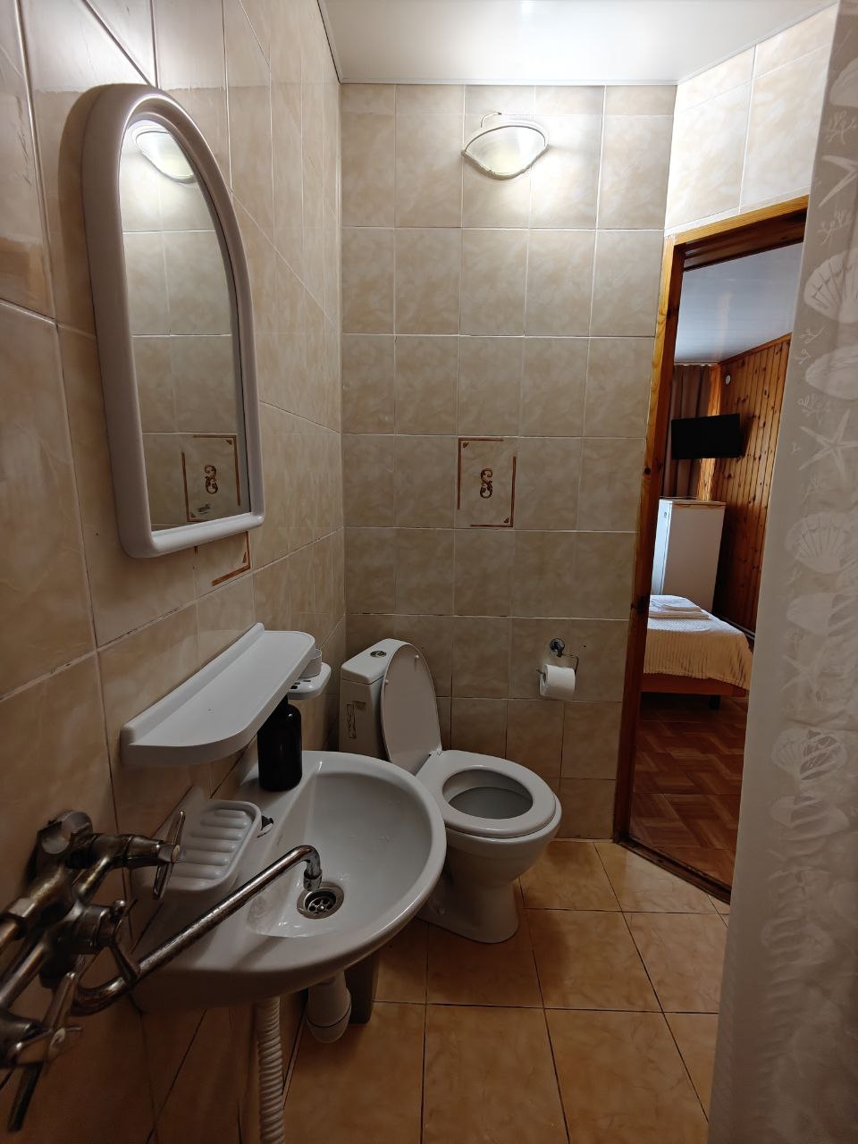 Индивидуальная ванная комната: душ, раковина, туалет.